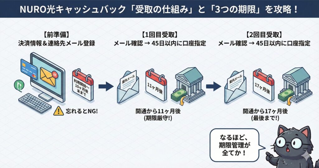 第2章|NURO光キャッシュバックの受け取り手順【時系列で完全整理】