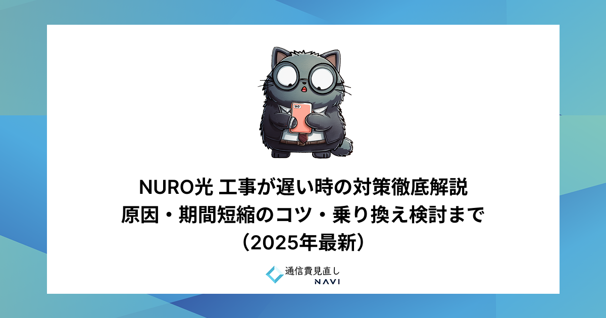 💡 ポイント: NURO光は速度が非常に速い一方、工事は別回線より時間がかかりやすい特徴があります。遅延の仕組みを理解しておくと、今後の判断がしやすくなります。